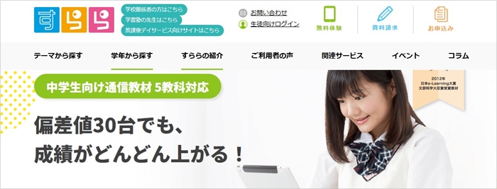 「すらら」は、AIを活用したアダプティブラーニング型の通信教育。中学生の学習到達度に応じて問題が出題されるため苦手を放置せず、効率的に数学の基礎固めが可能です。