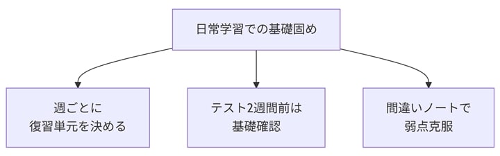 こうした習慣を定着させれば、テスト前に慌てる必要がなくなり、常に数学の基礎固めが整った状態を維持できます。