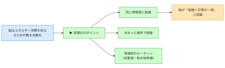これらを意識することで、脳が「勉強=いつもの行動」と認識し、勉強習慣の定着が進みます。