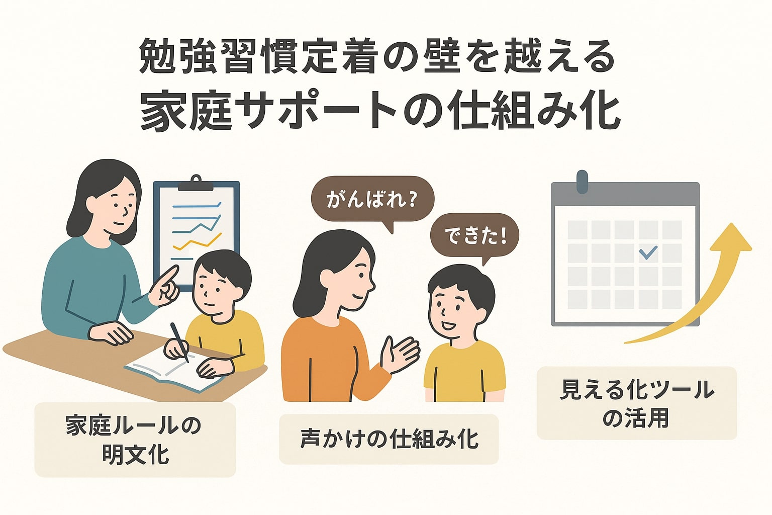 家庭内で協力しながらルール・環境・ツールを整えることが、最終的には勉強習慣の定着を後押しします。