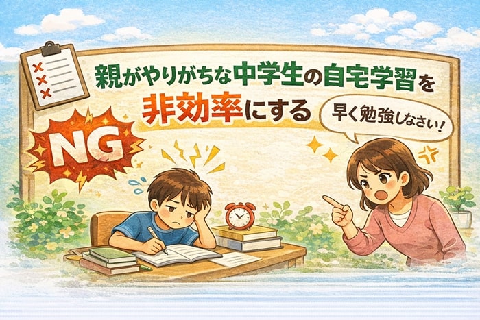 ここでは多くの家庭で見られる、中学生の自宅学習を非効率にしてしまう代表的なNG対応を整理します。